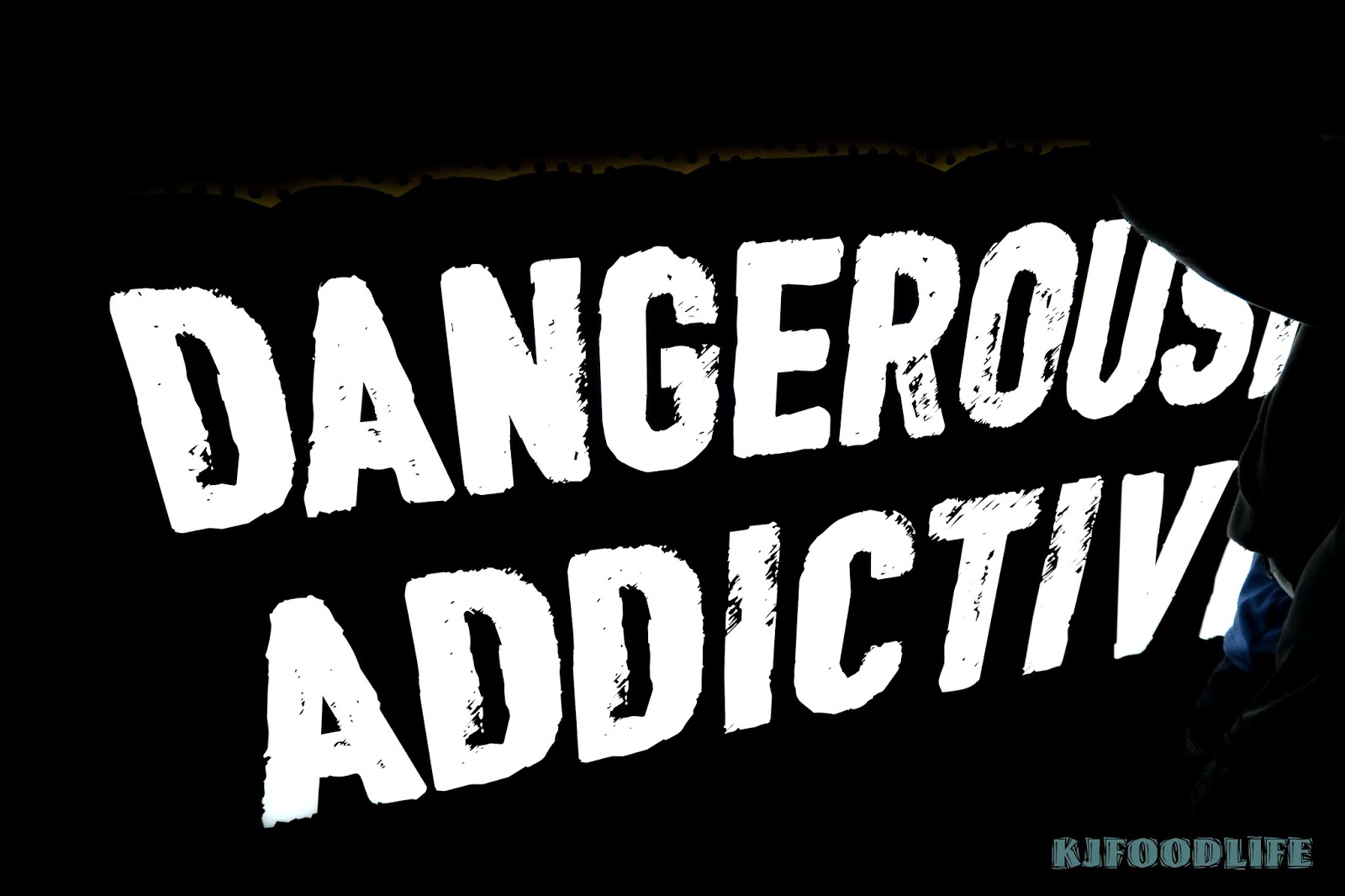 唔少得佢地自己既標誌,呢個樣一望就認得,仲有佢地既金句Dangerous Addictive,真係會令人一食就上癮。