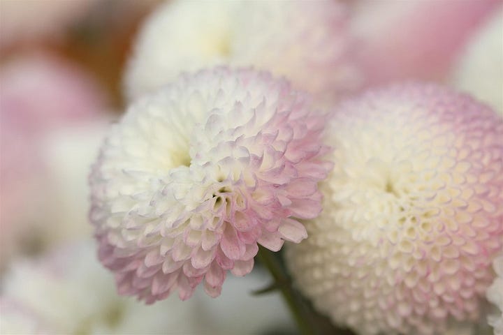 到了花店我才發現我其實從未買過花,不,我開初便說過我早已送過幾次花給她,所以我不是沒有買過花,我只是沒有買過「從沒有到有的花」,意思是我都是買現成店裡一束束的,有甚麼我就買甚麼,但店裡並沒有現成的菊花花束,倒是能散買不同種類的花。