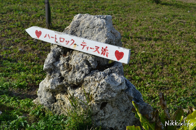 先去古宇利島的重點行程,就是心形礁岩了。輸入Madcode去到心形礁岩附近,已經見到有多個指示牌,這兒的停車場也是要收費的,把車子停好,就可以向著指示牌前往心形礁岩了。