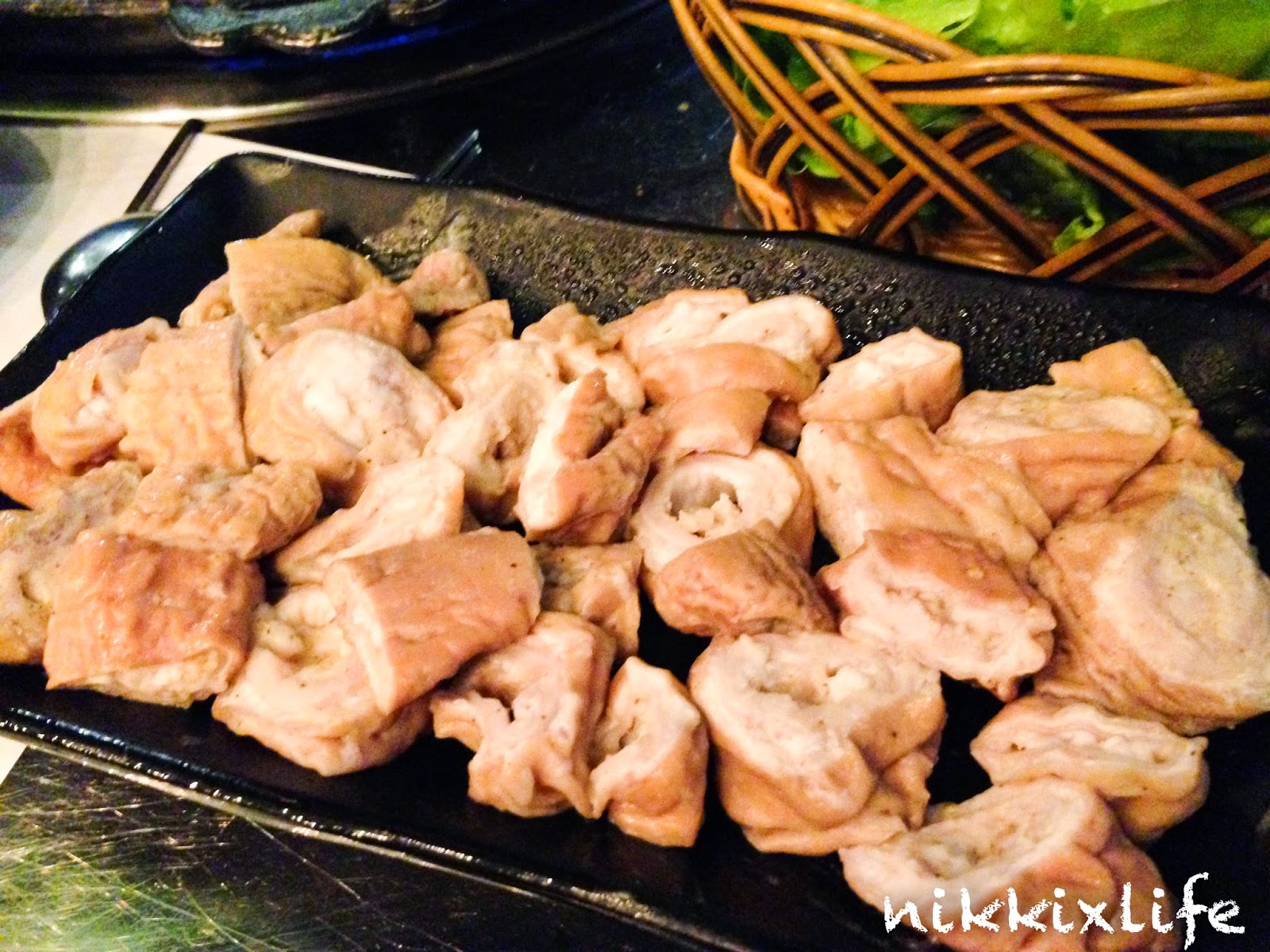 一碟的豬大腸起碼有十五粒以上,相當夠份量,不算大粒,但這樣亦好,放到口中都不是太大件。放在爐上烤熟,最近腸胃不太好,還是烤熟一點較好。 烤好後沾上一點喜來稀肉的韓式醬汁,湊熱地放到口中一嚐。豬大腸的外層烤到脆脆的,但內層的卻帶著截然不同的口感。內層的冧身,咬下去帶點煙韌,煙韌中不會感到難咬,口感豐富又有嚼感,相當出色。