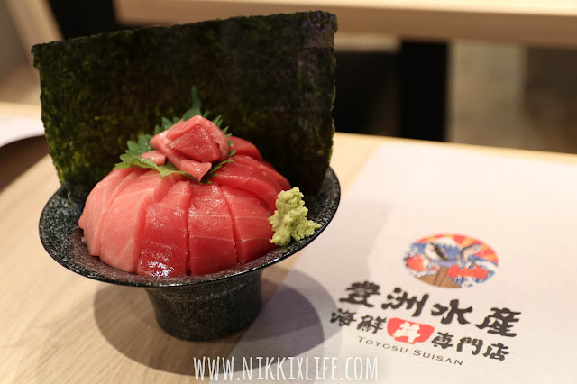 這份鮪魚鮫小食是豊洲海鮮丼專門店的限定,聽說數量有限,每天只有十件。以鹽燒的方式製作,在魚鰓和兩邊魚鰭對入為最多魚肉的位置,骨又少,魚肉更是大片又嫩滑。一件的鮪魚鮫吃到滿滿的美味魚肉,$98絕對超值,最適合跟朋友一同分享。