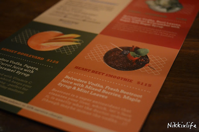 最近他們推出了這款新的Drink Menu,以蔬果如木瓜、紅菜頭、青瓜混合Belvedere Vodka,帶少許Smoothie的口感,更有Detox的作用。揀選了很熱門的紅菜頭,味道甜甜的,再帶點蔬菜的青香,配上藍莓、紅莓和薄荷葉,感覺沒有過份的甜,帶點清新,非常的不錯。酒精始終也會沈底,所以建議一下大家飲前先攪拌,以免喝到最後只剩下酒味。不過不太好酒精的也可以跟店員説聲,叫他們不要加或是少加點酒精也可以。