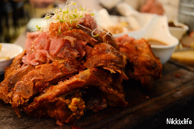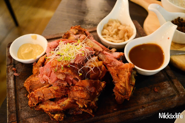 Espuma一直在菜式上都有很多選擇,雖然如此,但他們依然有在不同時段推出新菜式,而香脆咸豬手 就是最近新推出的菜式之一。如果早就對這碟豬手有興趣,你眼光真不錯,因為真是頗有驚喜的!不妨先跟店員下單,因為烤焗豬手需要點時間的,而他們每次以三至四隻豬手烤燒,若錯過了可能要等下一批。 豬手份量也是挺大份的,我們以免再度眼闊肚窄,所以沒有點什麼麵、飯之類的菜式。豬手配上酸菜,肉汁醬和芥末醬,使豬手增加多一點味道。
