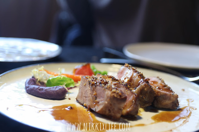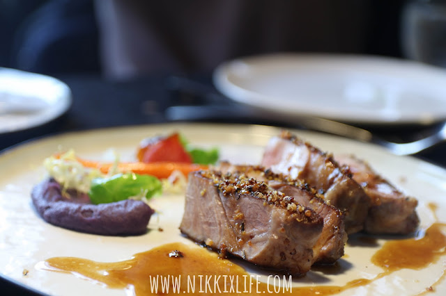 主食部份,也是令人頭疼不知如何選擇。這份黑毛豬因為有紫薯的搭配讓朋友非點它不可。選取黑毛豬豬頸肉部分,肉質相比下更加腍滑。本沾上少許紫薯是有點失望的,因為吃起來跟薯蓉無異,但後勁的紫薯味道慢慢發出,我也急急把失望收回。