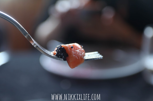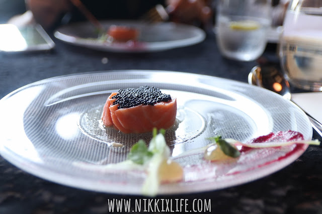 在這個好心情好天氣的環境下,這個Weekend Special的42度慢煮的煙燻三文魚沒有令我們失望。菜式一呈上時有個蓋子把三文魚塊蓋住,希望魚塊吸收煙燻的氣味。一把蓋子打開,白煙快速從蓋子逃走,雖然白煙短暫但飄散的情景甚為浪漫,如果可以把這個時刻停下來,你説多好呢。