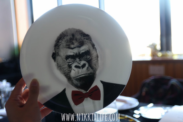 Les Saveurs Lunch Set 3 courses 每人$198、4 courses 每人$238 per person,再加10%服務費,更可以欣賞維港景色,在Fine Dining中叫做相當超值了。吃法國菜的份量比起其他中式、韓式的大鍋飯的多,但勝在每道菜循序漸進地填滿肚子,更不能忽略的是法國菜在食物藝術擺設的精緻,每道菜也是藝術品。Les Saveurs挑選這款動物圖案的餐具,黑白色的動物素材上,在動物如長頸鹿上的頸鍊和猩猩的領術呔加上鮮豔顏色,把動物進行人像化的配搭,更為圖案賦予性格,整個餐廳頓時更添氣派和時尚的氣息。