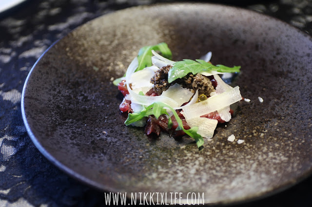 吃到以薄片牛肉為題的前菜,有嚼口時又在每口感受到牛香,不過在這道菜我更愛擔當配角的蘑菇醬,香氣濃郁。朋友喜歡在生牛肉上加上少許蘑菇醬一起放到口中,不過我還是喜歡蘑菇醬原始的感覺,單獨享受這炒香蘑菇醬的味道。