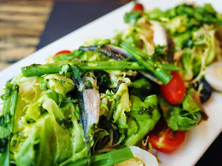 用上大量新鮮食材如鮮嫩的沙律菜, 吞拿魚和車厘茄等等,當然還有鯷魚,鮮香無比