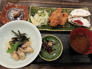 不用多想,點了兩份牡蠣屋定食,2150日元一份,有多款蠔,一共有10隻大小不同的廣島蠔!每款都好鮮味喔!