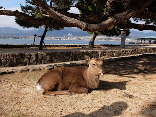 船程大約十分鐘,對面岸就是宮島了,遠眺見到著名的大鳥居還有島上的鹿~
