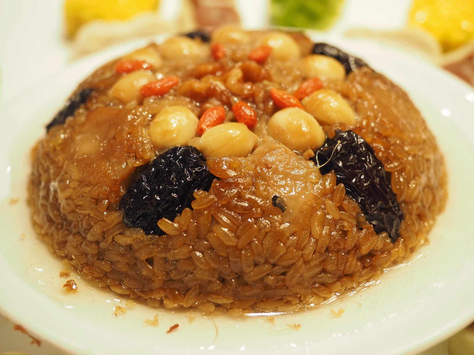 甜品環節,也以上海的傳統五福臨門作結 中間的是滋補的黑棗八寶飯,黑棗浸過黃酒,有養生之效,味道帶甜,令人吃得開懷