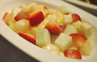 輕盈的則有 雲草八珍 百壽金果,前者有爽口雲耳,實在是近年大熱食材,也是比利甚喜愛的一款,而後者則是滿碟生果粒,吃得健康