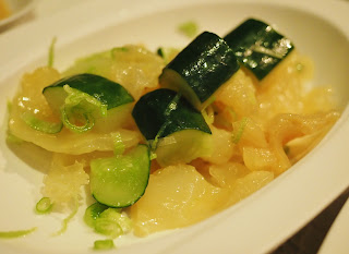 此席是將滿漢全席之108道菜式作一簡化,化成現代版本的小滿漢,好讓大家能嚐味,頭盤前菜「進門點」已見其精緻,雨花海蜇 和 鎮江肴肉,前者極為爽身,非常香口,後者則香腍軟糯富肉香