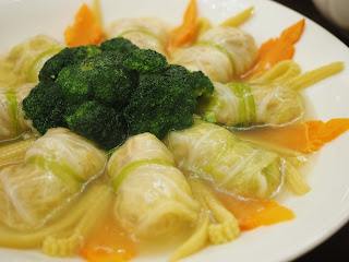 寸金紹菜包又是另一道手工菜,在這晚云云菜式中是比較清新的一道,紹菜包着的,是蝦肉蟹肉和切絲的鮮魷魚等配料,味道鮮香清甜,味道怡人