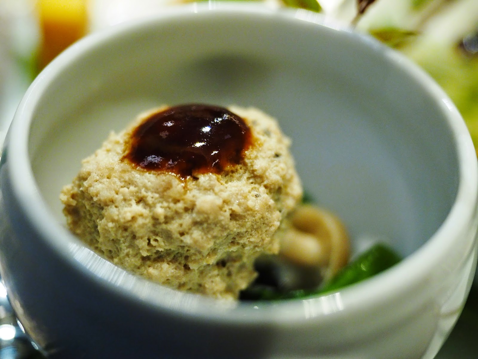 春菜帶一點草香,也令人有開胃之感,而以芝士捲着芋蓉來吃,芝士奶香伴以鮮甜的芋頭,味道配搭不俗其餘兩款,鮟康魚肝那軟腍的口感,加上幽幽的油香,沒有鵝肝那種膩,也沒有魚腥,味道討好,而以鮮豬肉製作的豬肉丸子,其貌不揚,卻是最喜歡的,肉煙韌有緻而香濃,配以黑麵豉醬更能帶出其香~