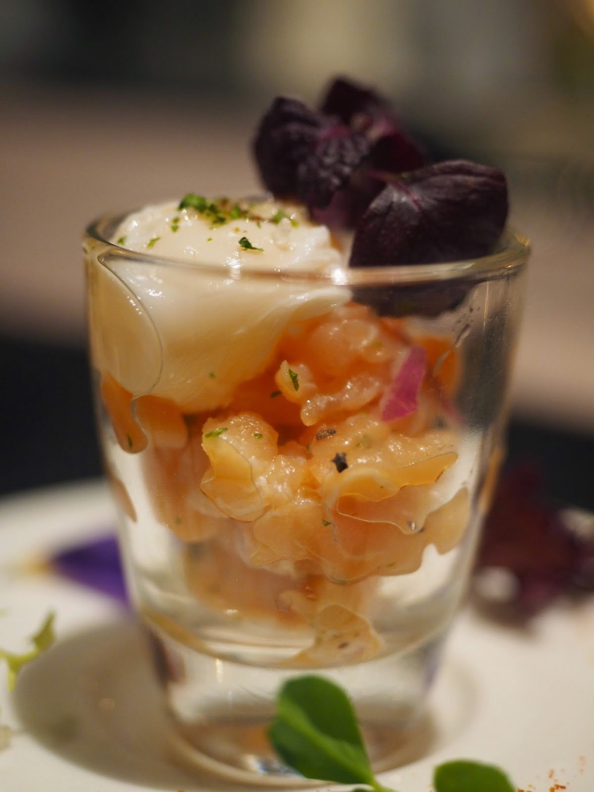 餐菜小吃是小丸子最愛的一小杯三文魚碎,置頂是新鮮的鵪鶉蛋,味道香濃,要攪均一點來吃,蛋香和魚鮮更滿溢