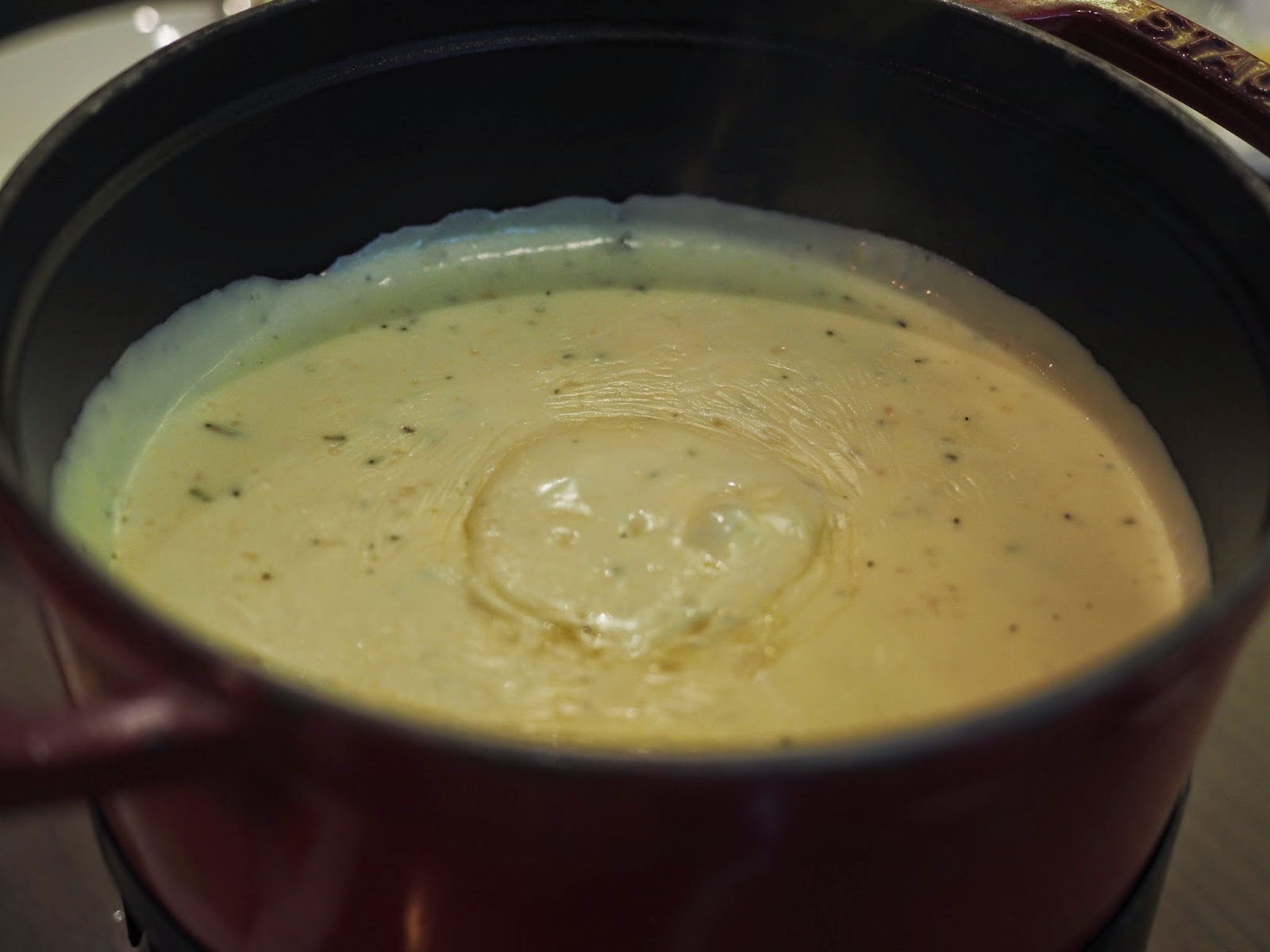 來到戲肉,是由四款芝士混合而成(包括Mozzarella,Parmesan & Gruyere,Emmenthal等),當然少不了白酒喇,感覺上,比上一年吃到的稠身,芝士味也較香濃,相對之下,白酒的味道則較淡