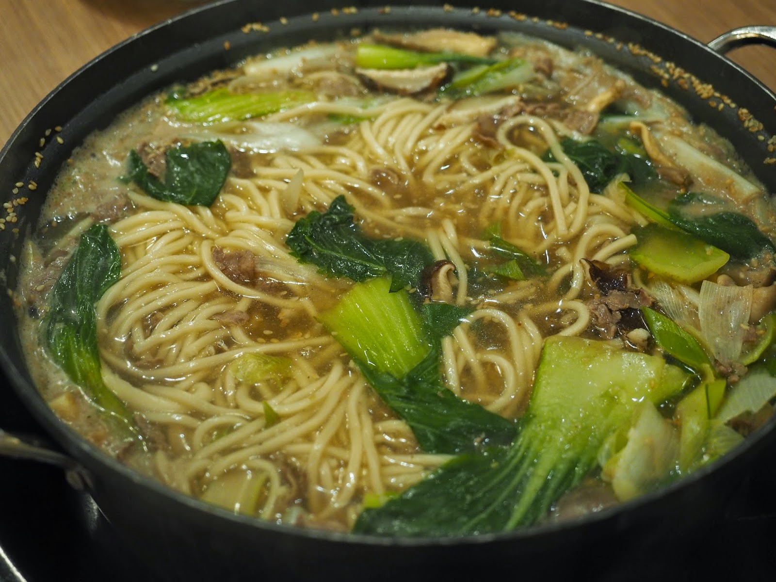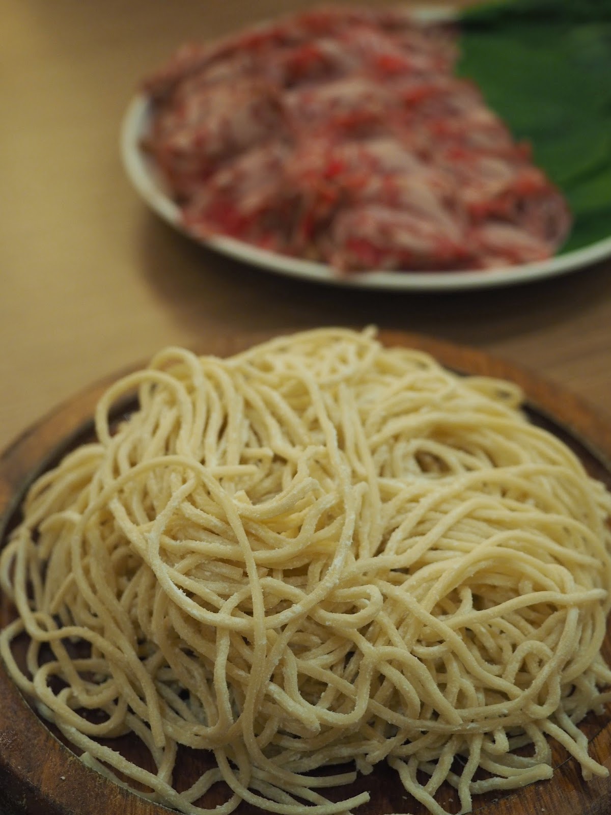 堂弄的鮮牛肉鍋麵,侍者先放入鮮牛肉煮湯,再放入麵條煮熟上枱