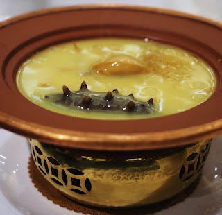 前菜之後,就來到是夜重點之一既 滿漢皇壇子,此湯羹乃那家名物,取名皇壇子,乃是承蒙皇恩的意思,湯頭用老雞老鴨和干貝等材料煲制,歷十二小時,配料更有珍貴的海蔘鮑魚和素翅等