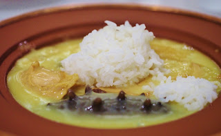 食也講究,分三吃,先品嚐原汁原味的湯汁,芳香四溢,再加入白米飯拌吃,米飯盡吸湯的精華,真的想添飯哩! 最後則是加入腐乳,令味道昇華,效果突出