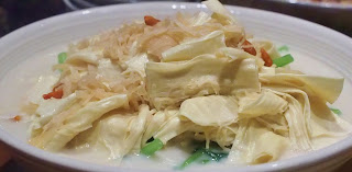 重口味過後,來一道 杞子鮮腐竹瑤柱魚湯浸皇帝苗清清味蕾,這裡的魚湯不可錯過,濃郁的魚鮮香,還有口感細緻的皇帝苗,很清新