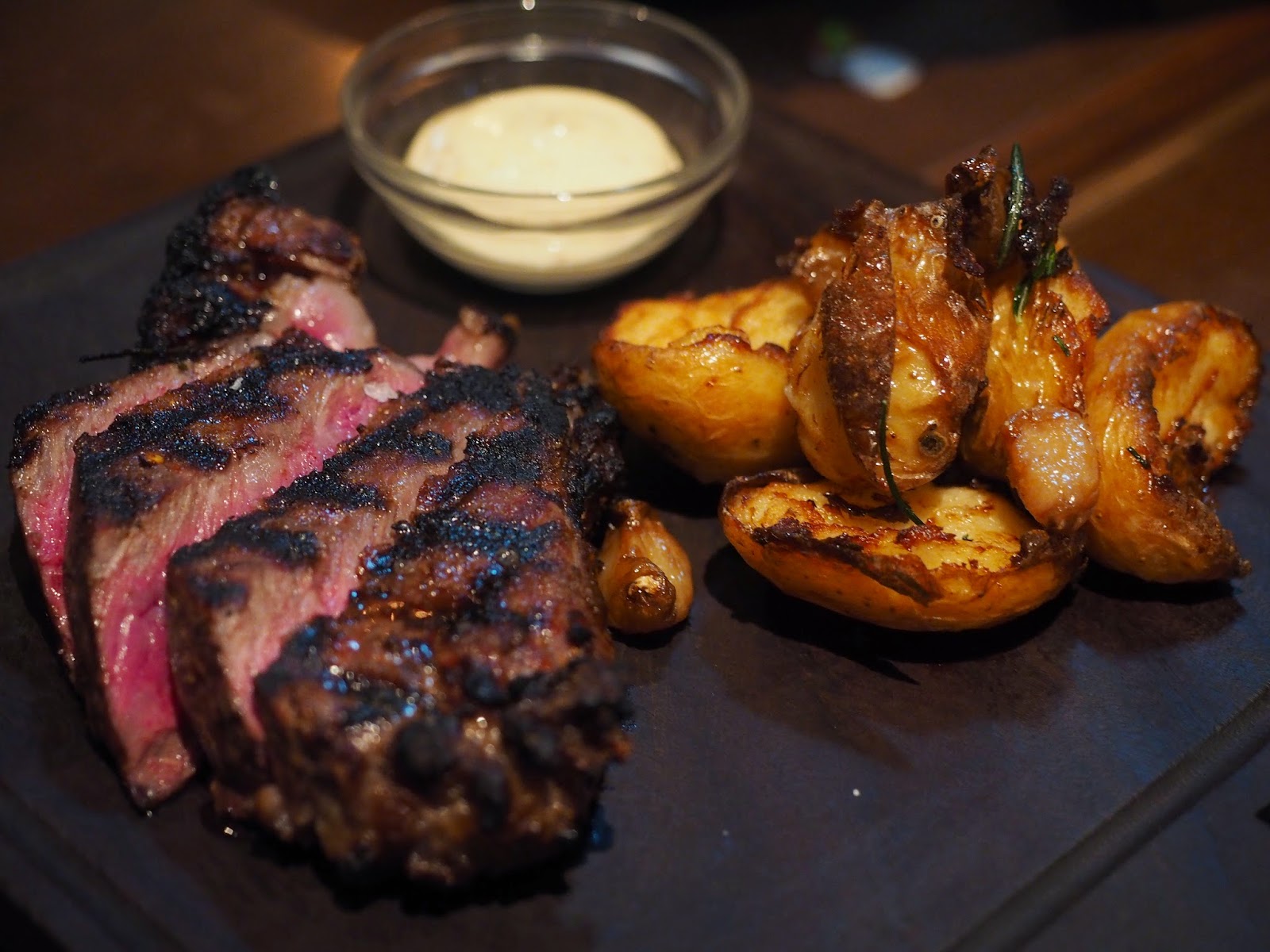 Bistecca di Manzo Wagyu 8ozdry rubbed 8 oz. ribeye, crispy prosecco potatoes, mustard mayo