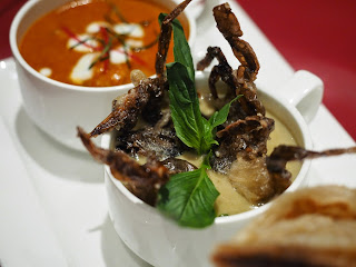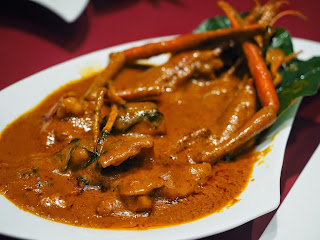 用四款不同的咖喱加上四款食材來炮製,分別是青咖喱軟殼蟹, 紅咖喱菠蘿蝦球, 蜜沙文牛腩和特濃咖喱雞柳