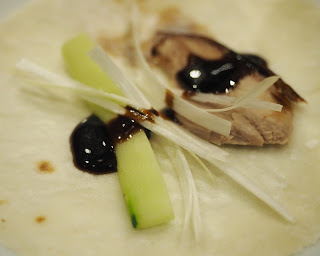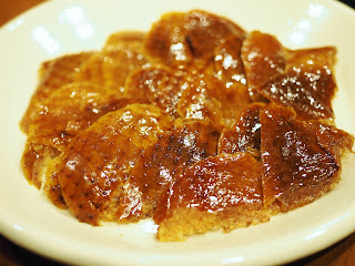 從來吃烤鴨,只愛用簡單的配料,只加大蒜和麵醬便可,最愛仍是胸皮的那一碟,真的有點入口即溶的感覺