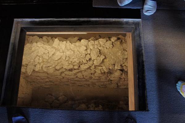 入宮內要脫鞋子,這是展示首里城下方的城石。