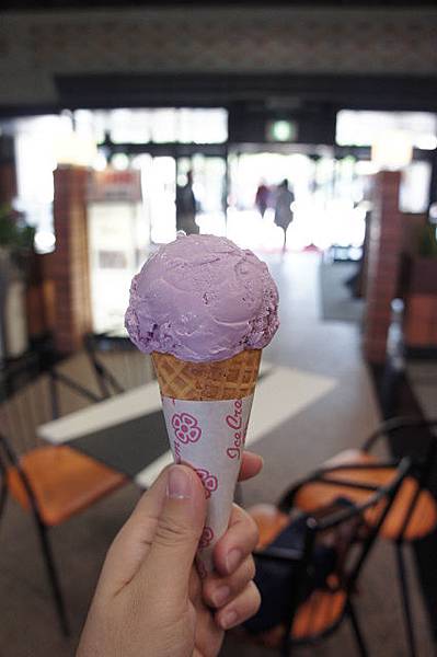 逛一圈天氣太熱來休息區買支芋頭冰淇淋解解熱。