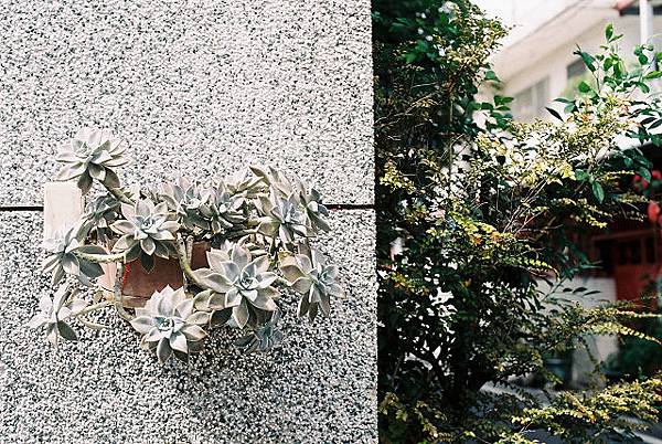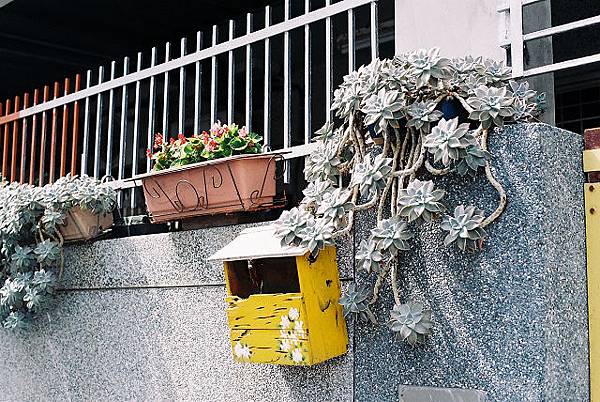 京都人喜歡在房子牆外種植物,不能種到馬路上去就會搭檯子,植物越疊越高,花蓮人也愛在房子牆外種植物,甚麼植物都可以,不設限。