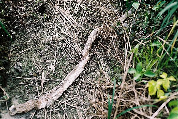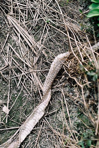 這蛇還真不小,脫了皮不知道"蛇"去那兒?好可怕,趕快離開。