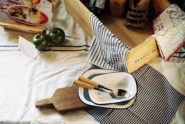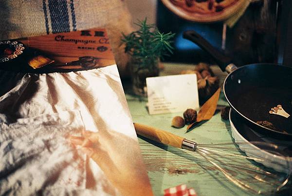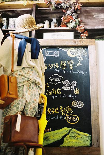 這篇要介紹一個已經結束的展覽,底片拍完之後最近才送去沖洗,手腳真的是太慢了。那就一起來"回顧"吧!由Yokoneko的Sandra發起的花市集,取名為花市集,是認為女性如同一朵花,花朵綻放的自信與美麗值得被大眾看見讚許,受邀參與展覽的素人們發揮第二專長,藉由作品來詮釋自身的美好。這是一個有好幾個場次,會不斷更換主題的展覽,第一場的主題跟廚房有關,一起參與展出的共有十位,依序是:Amelie、 Keya、 Yoko、 34號、 ㄚ寧 、克萊兒、 茉莉、 葉子菲、 蜜熊、 蔣熊。展覽期間為2013/11/12 ~ 2014/1/12,地點是天母好丘。在天母好丘的小閣樓展出現場充滿溫馨氣氛,爬上小閣樓看展有種進入秘密基地的感覺,身邊圍繞著的都是自己喜愛的事物,可以用"被幸福圍繞"來形容。