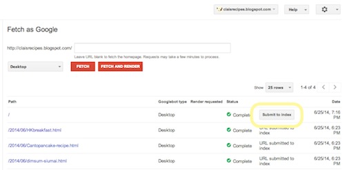 4)成功後(擷取狀態顯示為「Complete(成功)」,官方說可能需時 10 到 15 分鐘,我馬上就顯示成功了~^^),你還可以提交索引(Submit to index)呢~