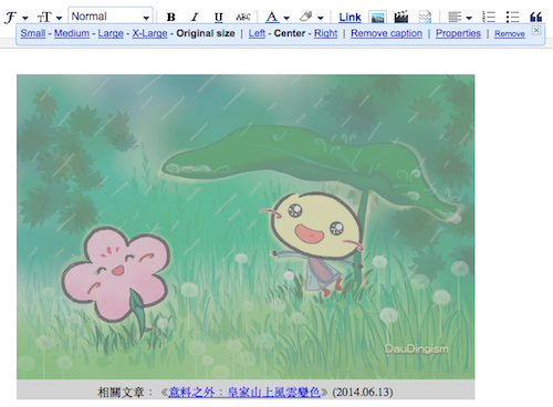 除了上面所講的文章資料,搜尋器會嘗試從文中的圖片了解你的文章。因意,寫文章時,不妨花一點時間加上圖片的資料:檔案名稱、說明文字和屬性(包括"Title"和"alt")!