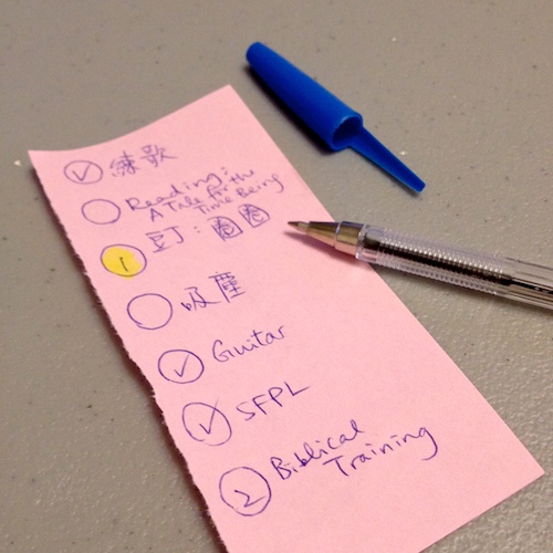 從上圖可見,拉太只是隨便拿一張小紙條,在上面畫圈圈和列出事項,就這樣,每天只需一分鐘,把當天要處理的事都寫出來,那天就變得有目標了。Go! Go! Go!