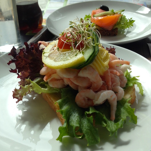 挪威的餐廳最常見的食物就是開面三文治(open sandwiches;挪威文:smørbrød)。三文治上可以放果醬、芝士、火腿、三文魚、蝦等。