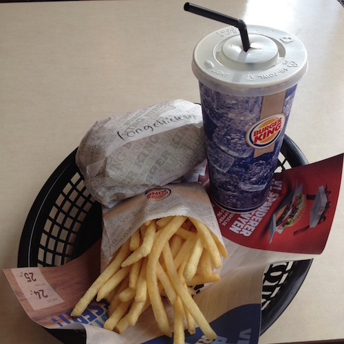 我們的第一餐包括兩個快餐(漢堡、薯條、汽水),總值Kr 205。