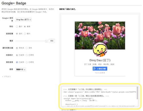 其實,Google工作人員已經為大家悉心預備了小工具,讓大家輕輕鬆鬆設定理想的Google+徽章~
