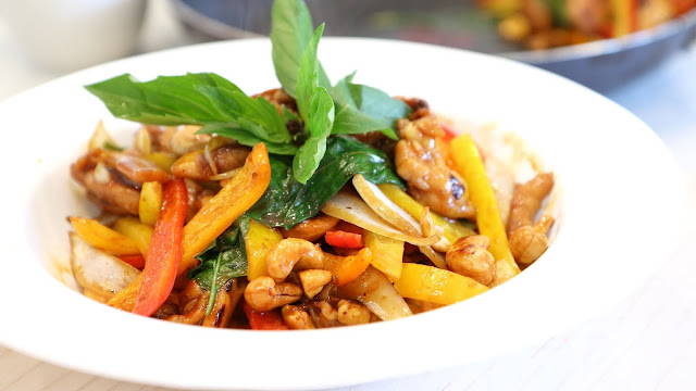 4. 加入汁料,腰果和金不換醃炒多1分鐘,上碟即成