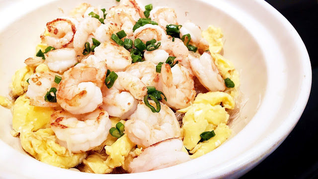 蝦仁粉絲煲以前一定整辣,咁先惹味,但小朋友唔食得辣,唯有改一改,整個大小都啱食嘅,營養豐富嘅滑蛋蝦仁粉絲煲,但炒蛋吸收埋蝦湯,非常好食㗎