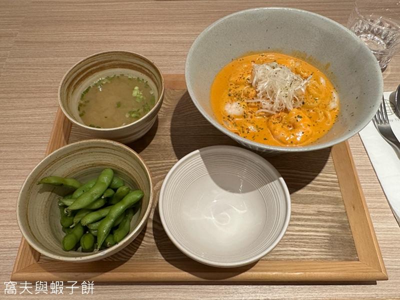 點了濃蝦汁湯烏冬($128),另加28元升級定食,烏冬以外還有味噌湯和枝豆。