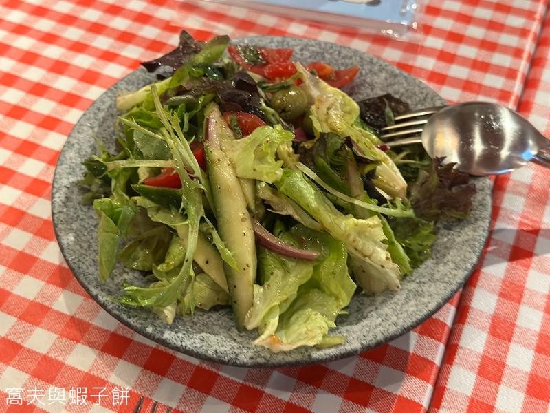 先來T骨牛扒附送的時令綠葉沙律,沙律菜、番茄仔和青瓜都很新鮮,沙律汁帶酸,十分開胃。