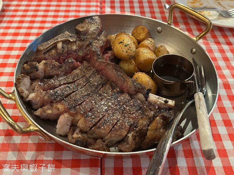 T骨牛扒(二位原價$1199)的生熟程度控制得不錯,肉質、肉汁和肉味都叫人滿意,個人喜歡簡單以鹽調味,配菜焗拇指馬鈴薯都很好吃。