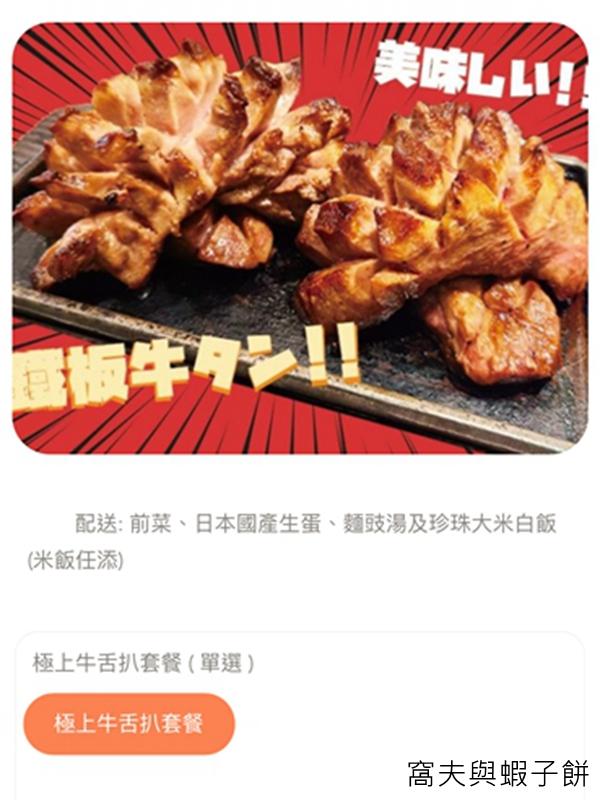 窩夫點了極上牛舌扒x松果牛舌芯扒套餐($138)。