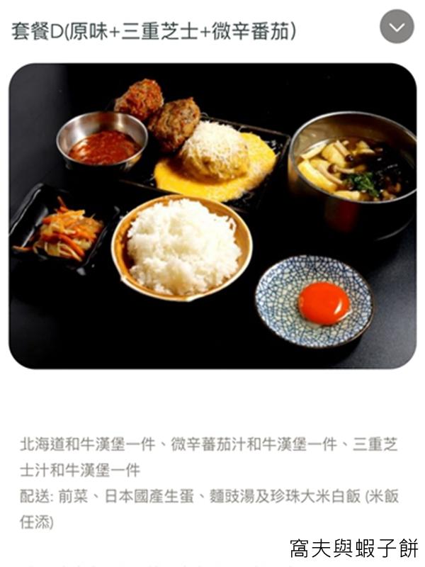 蝦子餅點了有三件北海道和牛漢堡的套餐D ($128),分別是原味、三重芝士和微辛番茄。
