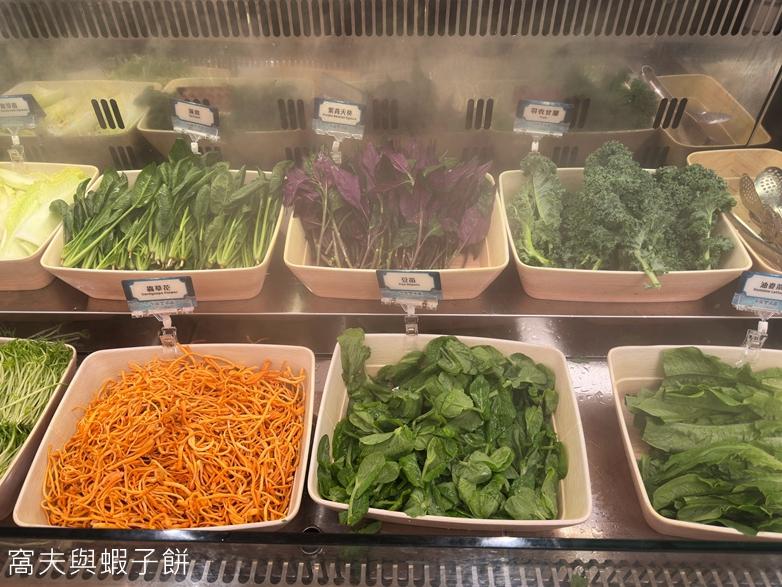 自助區的蔬菜種類非常多,看來十分新鮮,處理得很乾淨,紫背天葵、紫羽衣甘藍和芥菜等在火鍋放題並不常見。