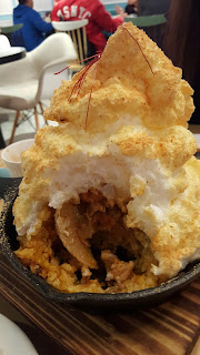 我們點了個原味泡泡韓國泡菜豚肉飯。驟眼睇以為是甜品,蛋白泡泡堆起了小山。